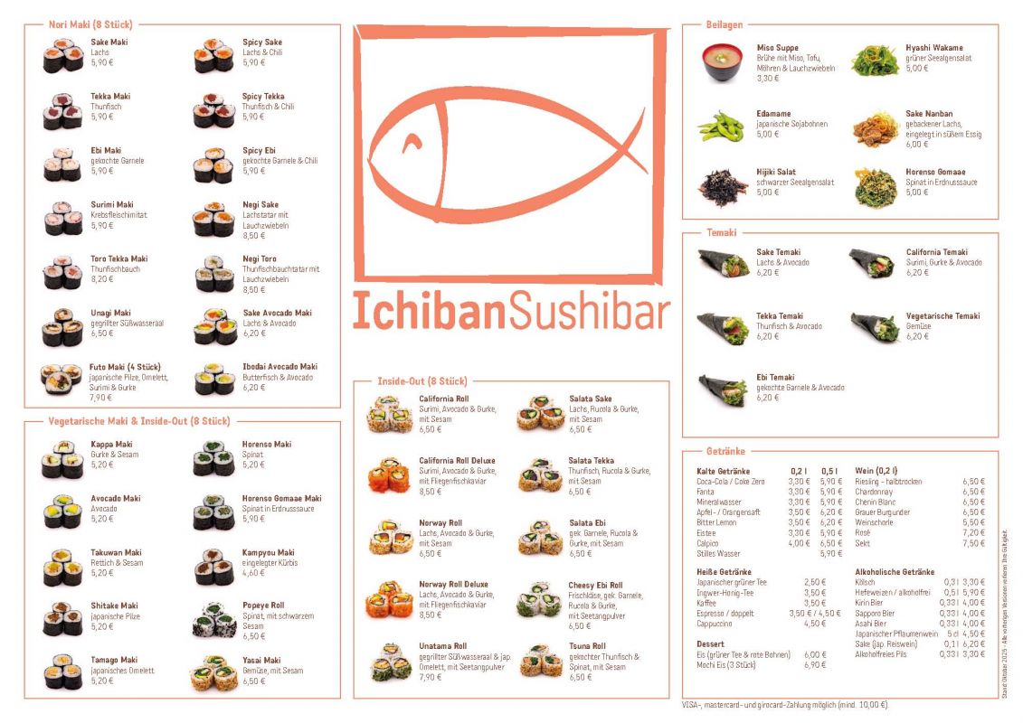 Die Ichiban Sushibar ist bis auf weiteres jeweils sonntags und montags geschlossen.